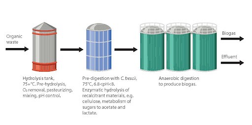 Many wastes are recalcitrant for AD because the organic solids are large, polymeric molecules, e.g. lignocellulose, that are not directly accessible to methanogens (Atelge et al. 2020, Sayara and Sanchez 2019). Hydrolysis of these polymeric materials into small, soluble molecules or ions makes them readily accessible for methanogenesis and improves the rate and efficiency of conversion of the substrate into biogas by AD.